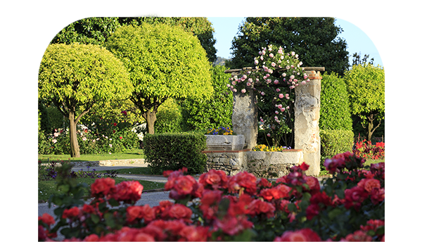 Once cultivated by monks, these gardens now feature structured pathways, flowerbeds, and lush vegetation. In spring, roses and colorful plantings create a peaceful and luminous atmosphere.